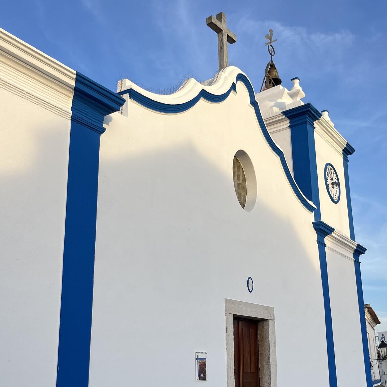 A igreja primitiva dataria possivelmente de finais do séc. XV época a que remonta a pia de água benta que ainda hoje permanece no seu interior. Objecto de muitas destruições e reconstruções ao longo do tempo, quer por ter sido abalada pelos sismos que ocorreram no país em 1531, quer, mais tarde, por ter sido destruída por piratas mouriscos, foi sendo alterada ao longo dos séculos. A torre sineira data já do final do séc. XIX.