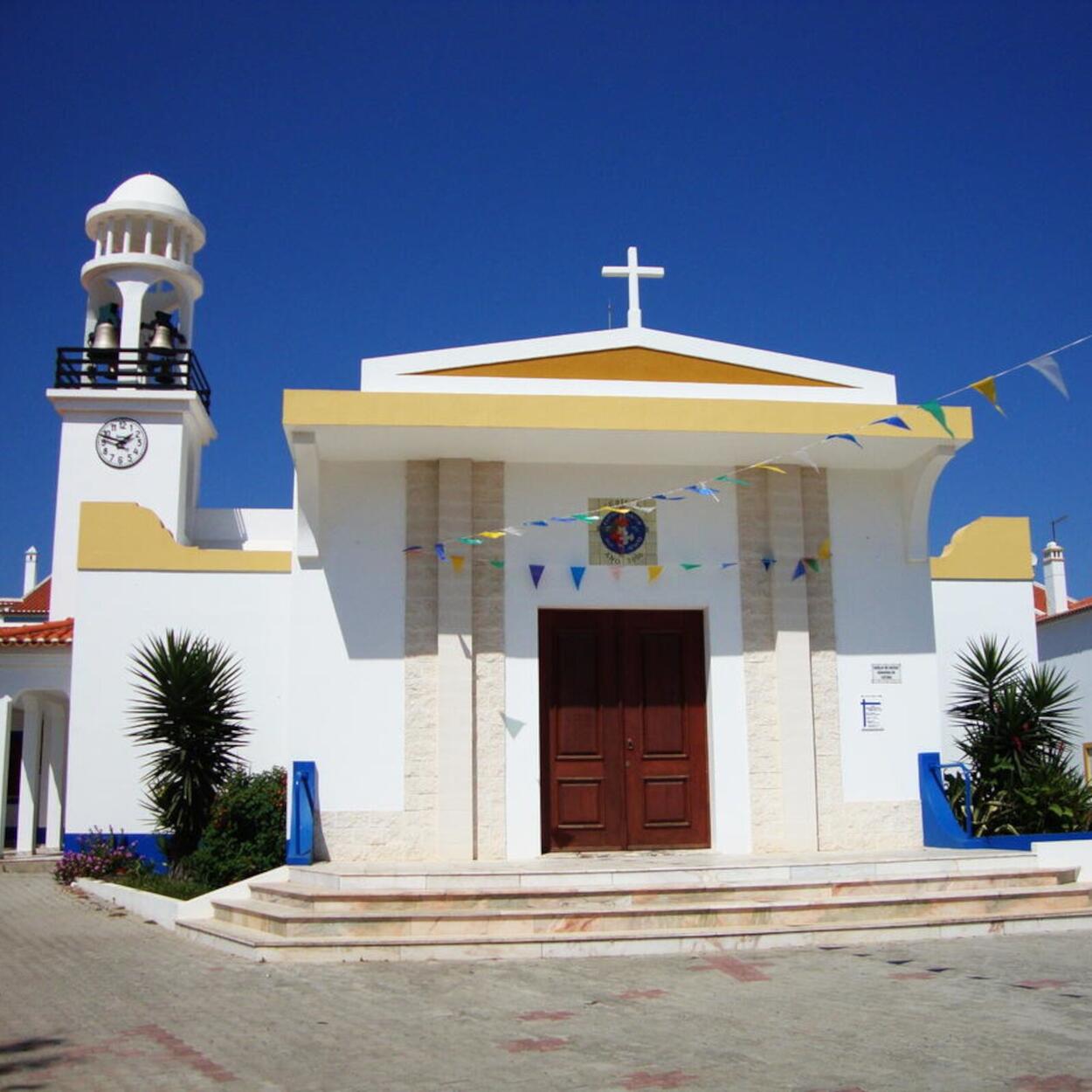 A Igreja foi dedicada a Nª Senhora de Fátima porque na Diocese de Beja, onde se situa V.N. de Milfontes, não havia nenhuma Igreja Paroquial a Ela dedicada.